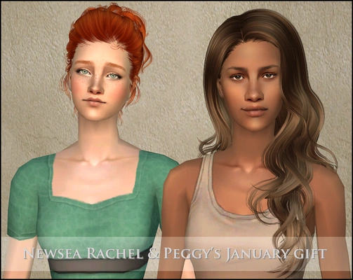 (On Peggy's January 2012 Gift): I'm in love with this hair! It's so wavy, and fluid and lovely _ And look at that Mouseyblue skin. You don't even have to try to make a cute sim the skin does all the work. <3