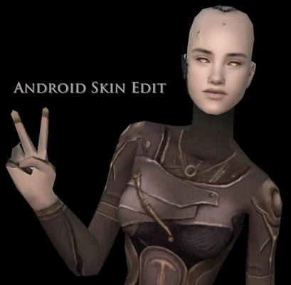 "~~I really like this android skin, but I have no idea who the creator is D: If anyone knows please tell me so that I can give them credit. ~~Thank you Yuxi, for telling me who the creator is! The original creator is Amethyst2 from Shapphire Sims. I replaced the original face of this skin with my Primal skinblend face :3 This skin works for both males and females and all ages.