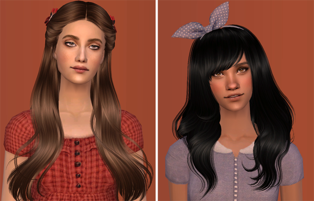 (On Peggy 7883:) This mesh is just gorgeous and simple. This hair comes in ALL Pooklet's naturals, v2 textures, is binned, familied and the mesh is included. Once again the little accessory bows (also made by Peggy) can be downloaded at Simscave and are not part of the hair.