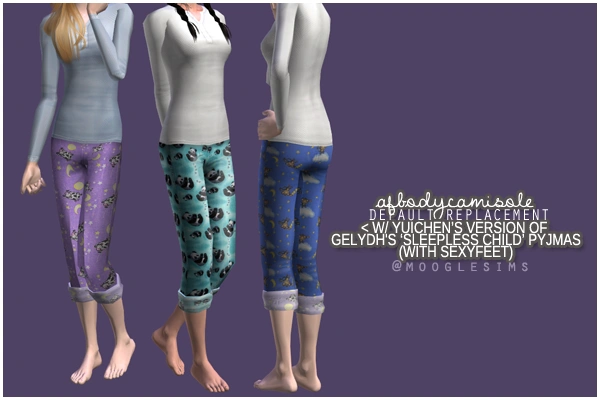 The site I originally got these from seems to be down, so I couldn't double check all the credits, but from what I can tell, these are from a site called 'Under your Skin', and the mesh was a Club Crimsyn one. They're really nice, and I thought they'd make a nice change from all the nightgowns in game. ;)
