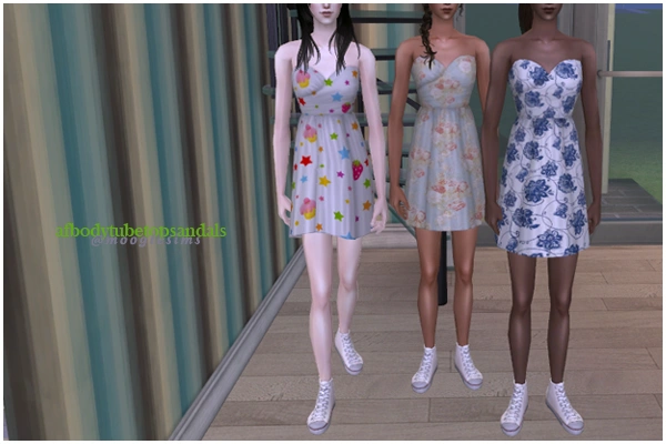 Simsibility originally picked this outfit to replace ‘tubetopsandals’, but I chose two different colours and enabled it for maternity and changed shoe sounds. They’re outfits by Trapping. :)