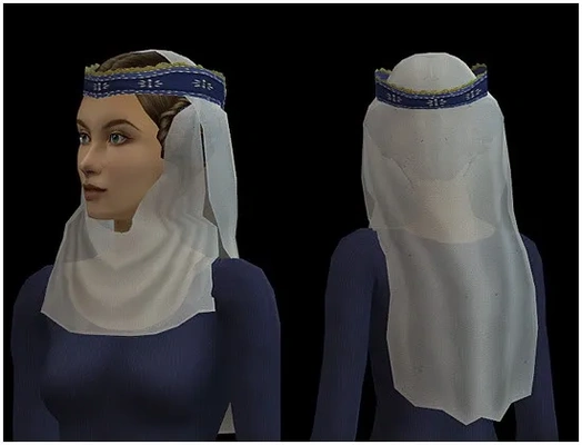 One crispinette, as an accessory. I only did one texture as the mesh took a bit to get right and between that and the being sick part, I didn't feel like doing more. Everything is alpha-editable, the cauls and crown/hat part are cut-out alphas (no transparancy possible, sorry. But you can change the shape, or remove them) and the veil and wimple are blend alphas and can be made transparant, or solid, or removed entirely. It's fully animated (wimple will look a bit crunched in around the neck when the sim twists around a lot, nothing I can do about that, but it does not stab). The crispinette will probably look rather weird combined with any other hair than the one I made above (as it was made to fit that hair).