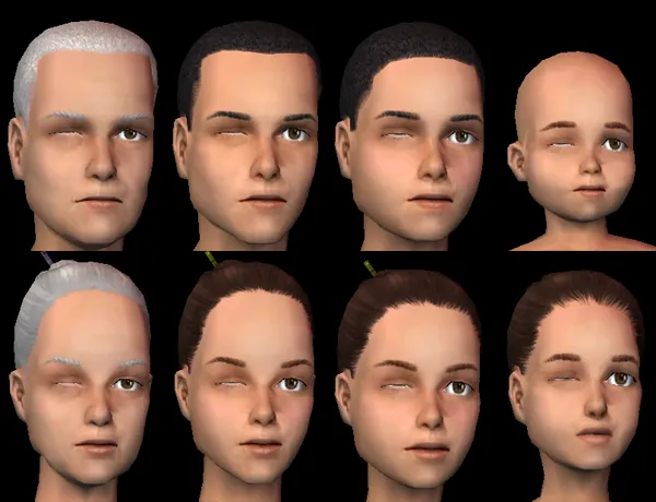 26 CYCLOPS (Sim uploaded. Self explanatory. Plus, upper lip with perfectly round top. Uses Denai's jaw. 26 is the Elf template, so you'll not get one-eyed townies randomly. :3)