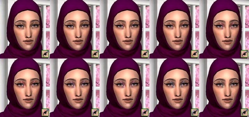 6 eyeliners, 6 eyeshadows, glitter face details; 10 swatches each. TU-EU (glitter is CU-EU).