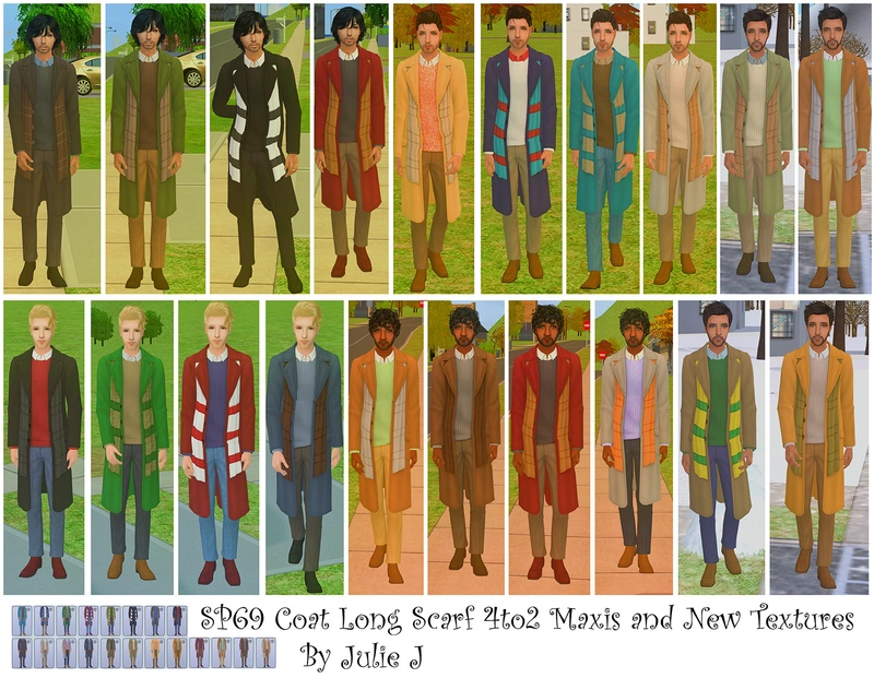 TS2: SP69CoatLongScarf 4to2 by Julie J All of the original Maxis Textures and some of my own My TS4 textures can be found here Mesh included - Has fat &
