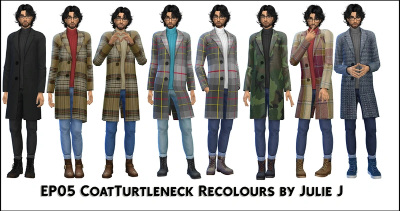 TS4: EP05Coat Turtleneck Recolours by Julie J Male - Teen to Elder Cold Weather Wear You need the Seasons EP to see this in game Has own thumbnail DOWNLOAD