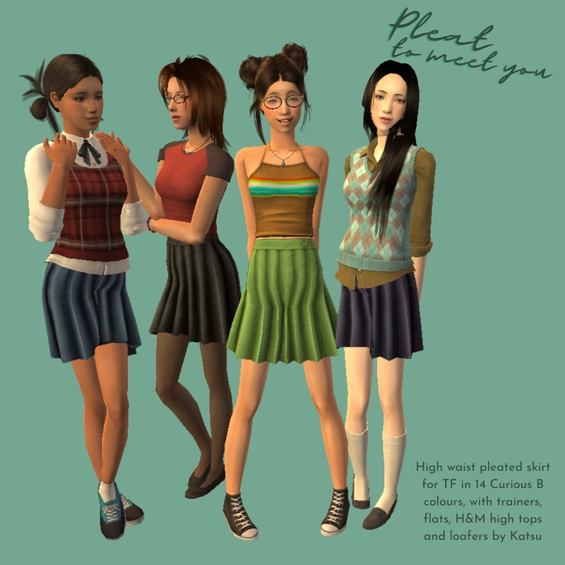 I needed more pleated skirts for TF (a lot of my sims wear school uniform just casually aha)- so I made ~I think~ around 120 of them. Here's the first