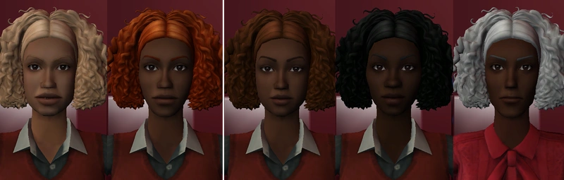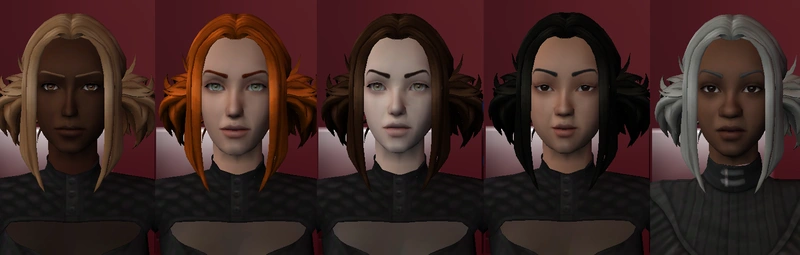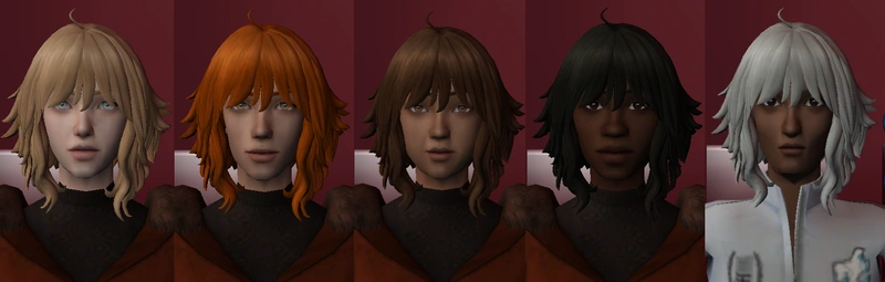 Two hairs retextured to add decora clips - they're based on the retextures I did last year, just with various clips added into the textures.