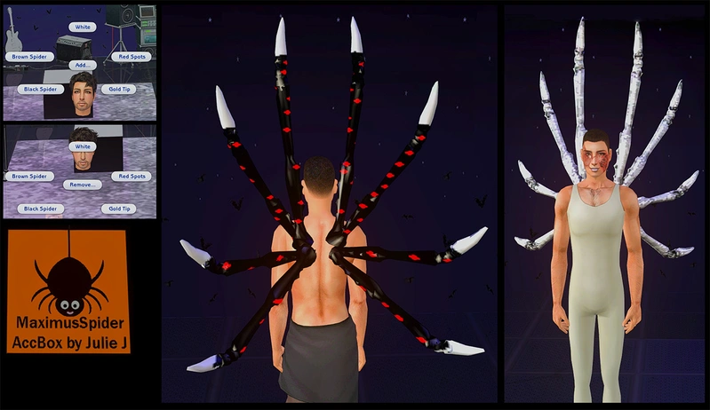 TS2: Maximus Spider Acc Box by Julie J Enabled for Males and 5 colours, all 3 of MaximumSpider's colours and a couple of my own thrown in. The original accessories