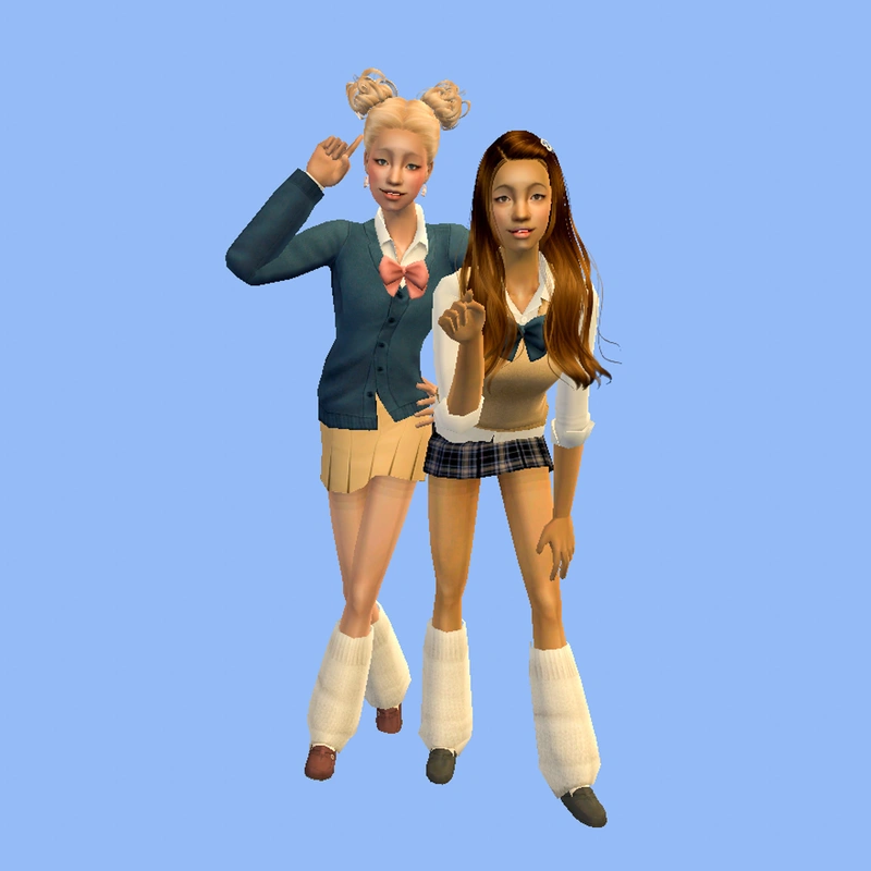 Kogal inspired sims! Thought I'd share them ā„ the blonde gal is Suzuchiyo ( CC list) and the brunette is Yamie ( CC list); they come packaged without clothes (my