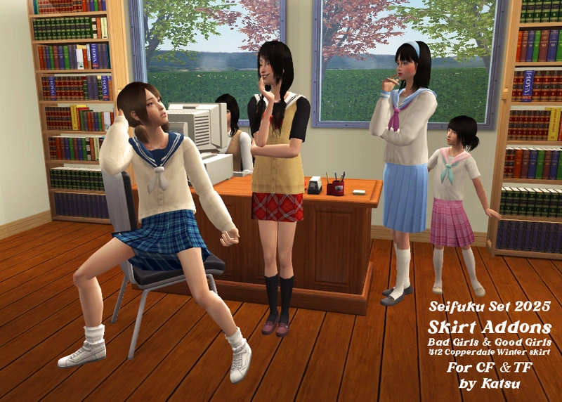 Not sure if āaddonsā is the best way to describe these as theyāre not repo, theyāre just a bunch of skirts on a few different meshes made to jive with the seifuku tops ^^