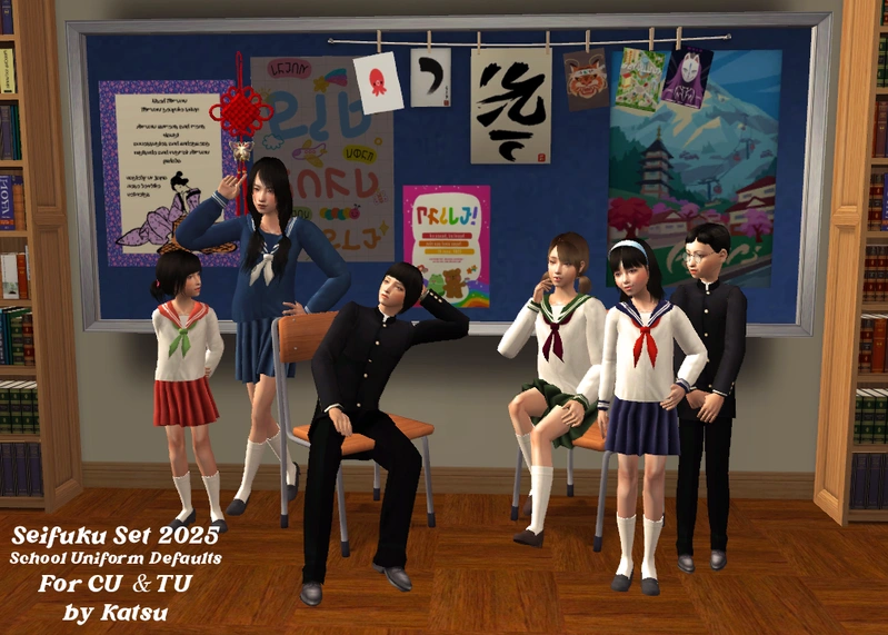 Next, we get to a replacement for my 2021 seifuku set defaults! Only theyāre a little different this time. The last couple of times Iāve defaulted these, Iāve offered a choice of both summer and winter uniforms. This time, thereās only winter. Why? Because this is essentially the āliteā version of the next part, for anyone who wants a simple default, and I didnāt put that much effort into it all told, aha.