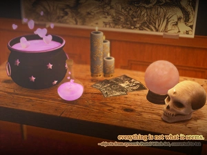 Happy Halloween! Includes following objects: Cauldron with Bubbles, Love Potion, Crystal Ball, Tarot Cards.