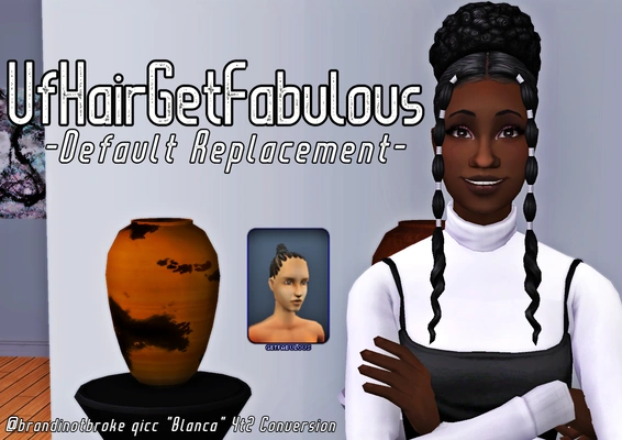 Sul sul! This is ufhairgetfabulous replaced with @brandinotbroke's 4t2 Conversion of qicc's "Blanca" hair. It is available for teens, young adults, adults, and elders. The polycount is the same as the original (4.9k). It is Base-Game Compatible! It has been tested on both The Sims 2: Ultimate Collection and The Sims 2: Legacy Collection.