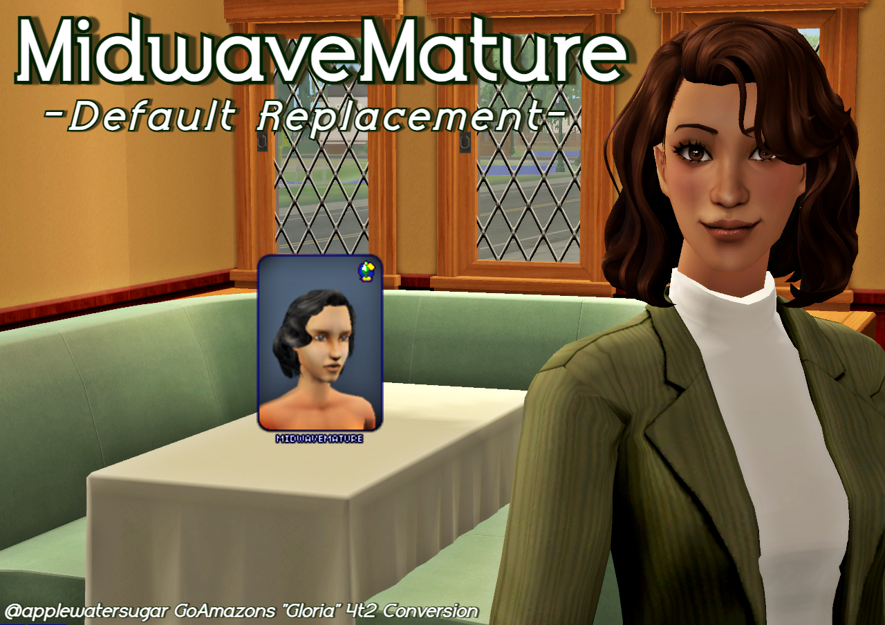 Sul sul! This is afhairmidwavemature replaced with @applewatersugar's 4t2 Conversion of goamazon's "Gloria" hair. The polycount is the same as the original (6.1k). It requires The Sims 2: Open For Business in order to work. It has been tested on both The Sims 2: Ultimate Collection and The Sims 2: Legacy Collection.