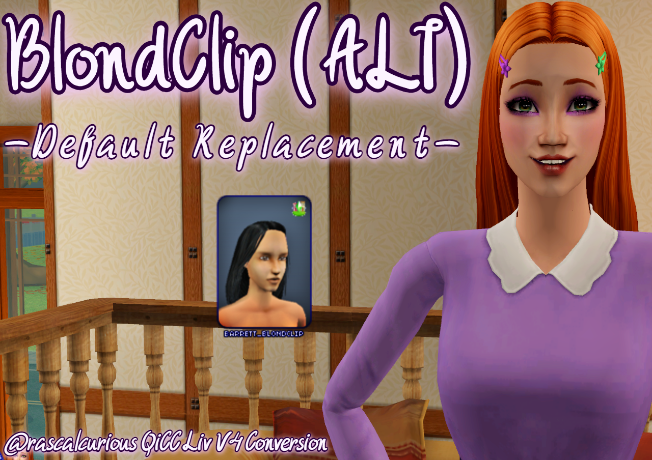 Sul sul! This is afhairbarrett_blondclip replaced with @rascalcurious' 4t2 Conversion of QiCC's Liv V4. This is an alternate default! I already defaulted blondclip in my barrett compilation, but I had found this hair shortly after and fell in love with it! It has been included in the .ZIP folder of my barrett compilation (ver 1.1 - scroll to bottom of downloads!)