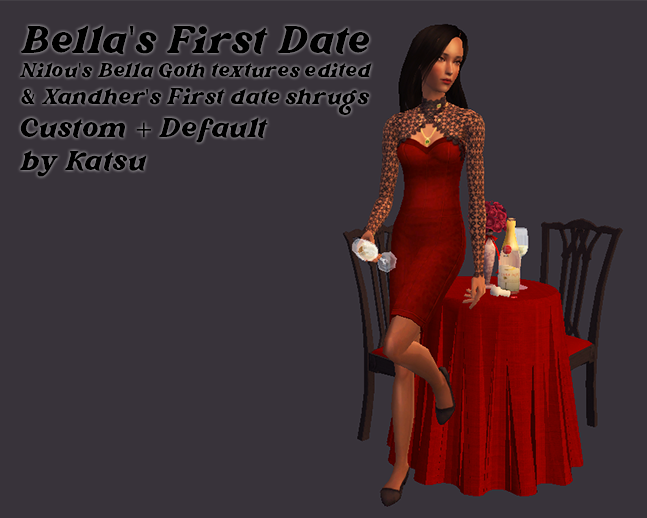 I have to admit it took a bit of work to separate out that shrug texture, but I'm really happy with what I came out with, even if it's not my usual style at all! I used Nilou's textures and Artemida's recolours, but edited them a bit for this purpose- I added tights to the skirt (though my tops would also work with the original tights-less skirts!), edited the shoes texture, and edited a bit of the maxis patterns back onto the purple and blue ones, added a bit of it onto the skirt too to make it more like a dress when together, I also added a bit of pattern to the yellow one. I made a 'second date' version of the patterned tops without the shrug. I recoloured the shrugs and the jewellery to match the outfits, but removed the nails and ring texture. AF only, everyday and formal. I popped a PSD in the zip in case anyone wants to do retextures with that shrug without having to cut it out again, aha.