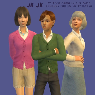 I've definaletley mentioned before that its useful for me to have sims walking around in school uniforms casually- well as I'm apparently allergic to making new meshes, here's some separated FT tech cardigans in solid colours inspired by school uniforms (but useful for more outfits!). Admittedly, I made these a while ago before my computer broke. But I actually remade them after I fixed it, because I thought the shadows on the original versions were a bit harsh!