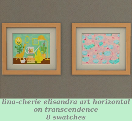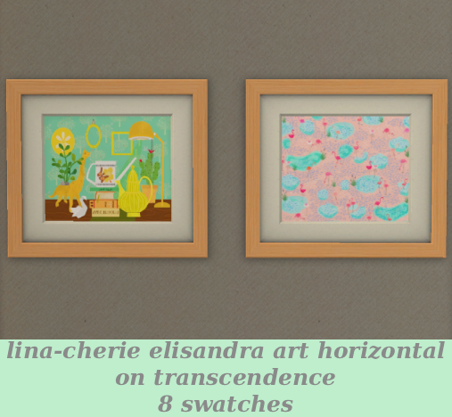 today i have a 4t2 conversion of @lina-cherie ’s eliandra art horizontal on the base game transcendence mesh. there are 8 swatches . you can get the addons used in the preview here (made by buggybooz, the frame is repoed to kitchenbasic)