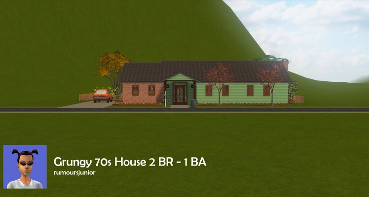 This house is complete with tons of grungy and dated furnishings, a hot tub, a black shiny toilet and tub, the WooHoo bed, 2 Bedrooms, a TV Room, a family room, and a driveway with a Grungy Car.