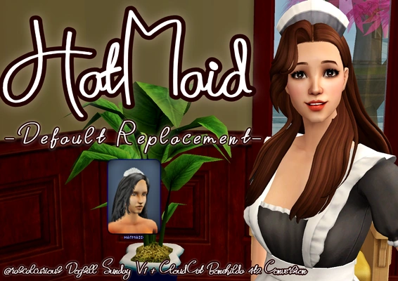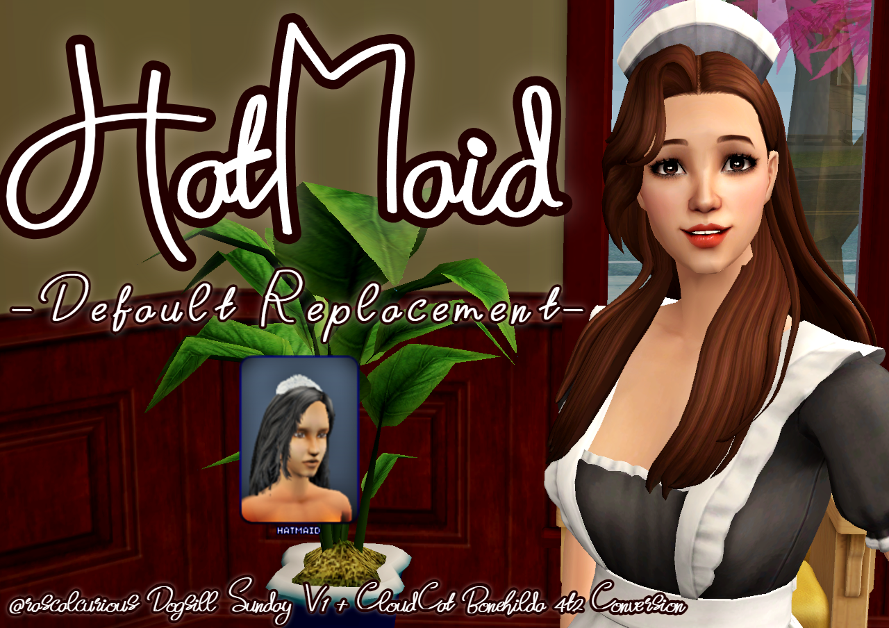 Sul sul! This is afhairhatmaid replaced with @rascalcurious' 4t2 Conversion of dogsill's Sunday V1 Hair with cloudcat's Bonehilda Maid Accessory. This was a request from anon. I don't take requests usually since I am new to defaulting, but suggestions are always welcome! Rascalcurious helped me by making this hair specifically for this default!! You can download the custom version here.
