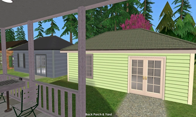 The garden area is small, but inviting! It is awaiting your green-thumbed sim's touch. ;)