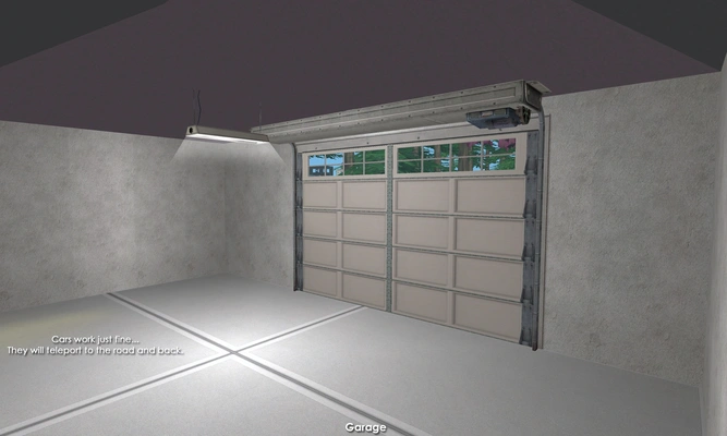 There is parking for one vehicle in the garage. NOTE: Cars will teleport to the road and back, there is no car-turning-in-to-the-driveway animation.