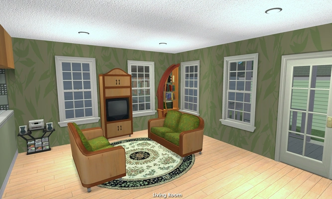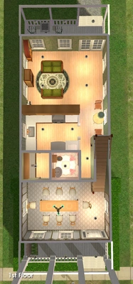 I intentionally keep my builds lightly furnished - with only EAxis stuffeths - so that you can have all the fun of decorating it! ( Please CC-it-up once you get it in your game! ) All appliances, plumbing and lighting are included; along with smoke and burglar alarms, and telephones.