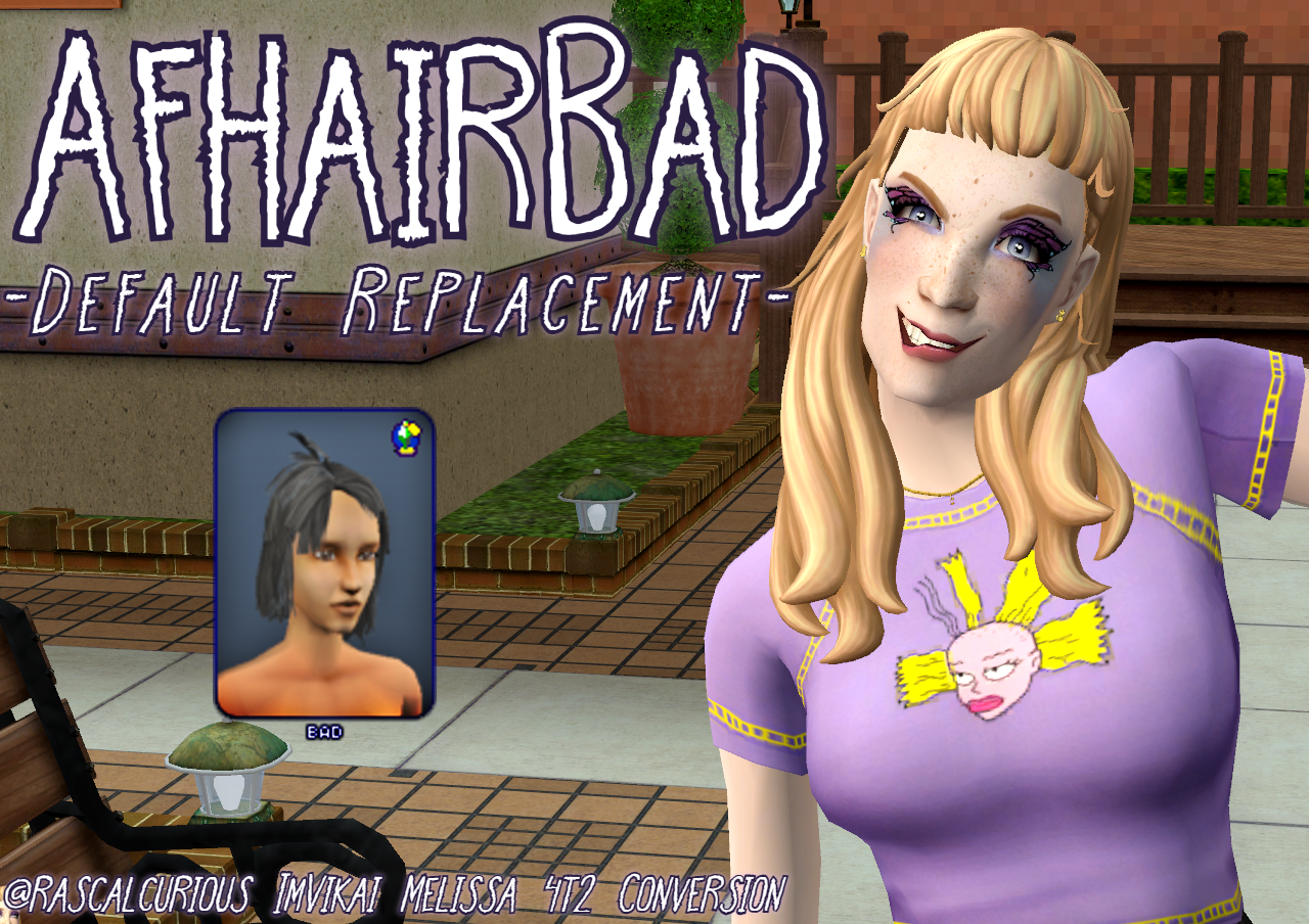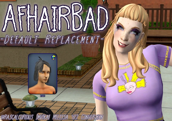 The female version is replaced with @rascalcurious' 4t2 Conversion of imvikai's Melissa Hair. The polycount is the same as the original (8.8k, animated). It is unhidden, but shouldn't be townified.
