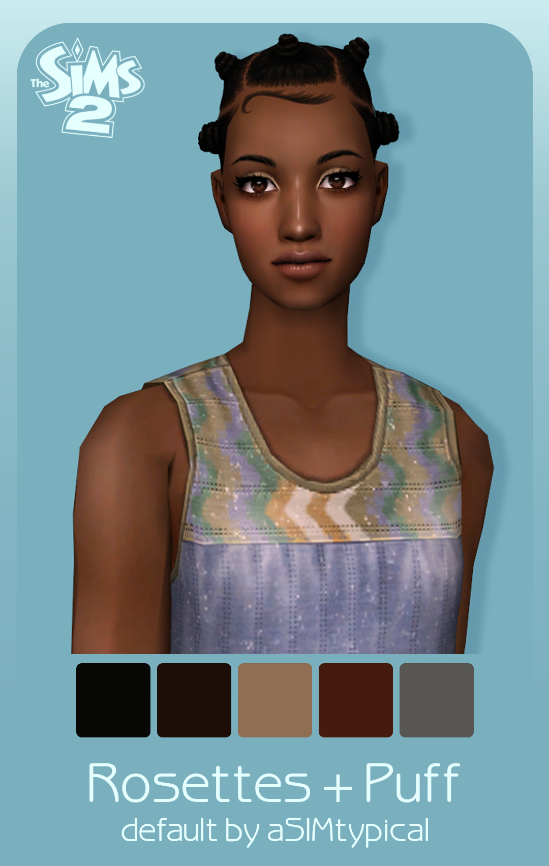 rosettes+ puff-replaced with Sims 4 Bantu Knots, by DeeSims, made smaller by ravensim, original here. converted and defaulted by platinumaspiration-I added the young adult clones in. pf-ef, 4.8k poly.