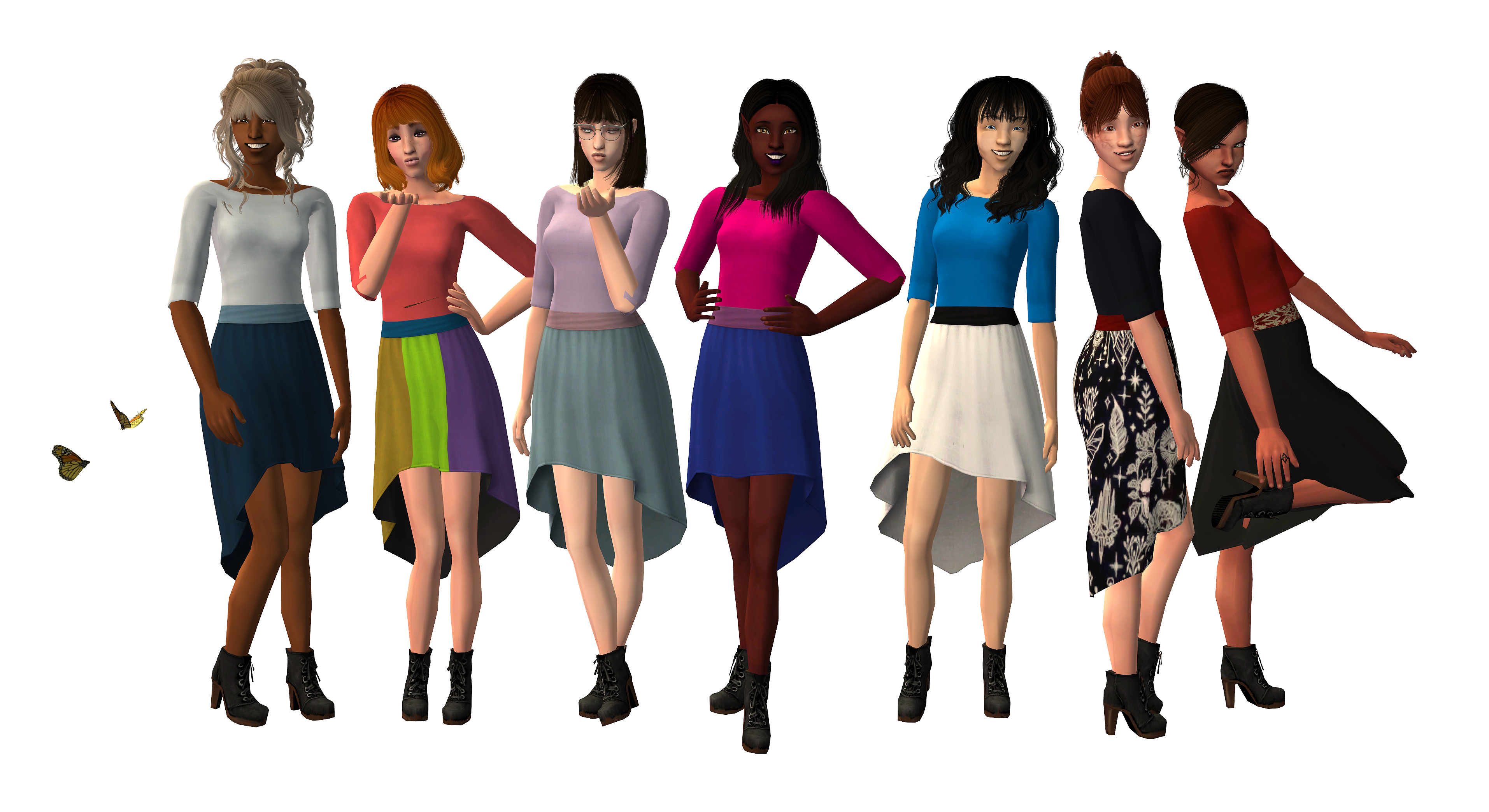 5 years ago, DeeDee-sims made a fun Boatneck Dress Mashup and posted a PSD. Some weeks ago, I went a little overboard with said PSD, creating way more color combinations than I would need for anything, ever. Now my game has 20 recolors of it.