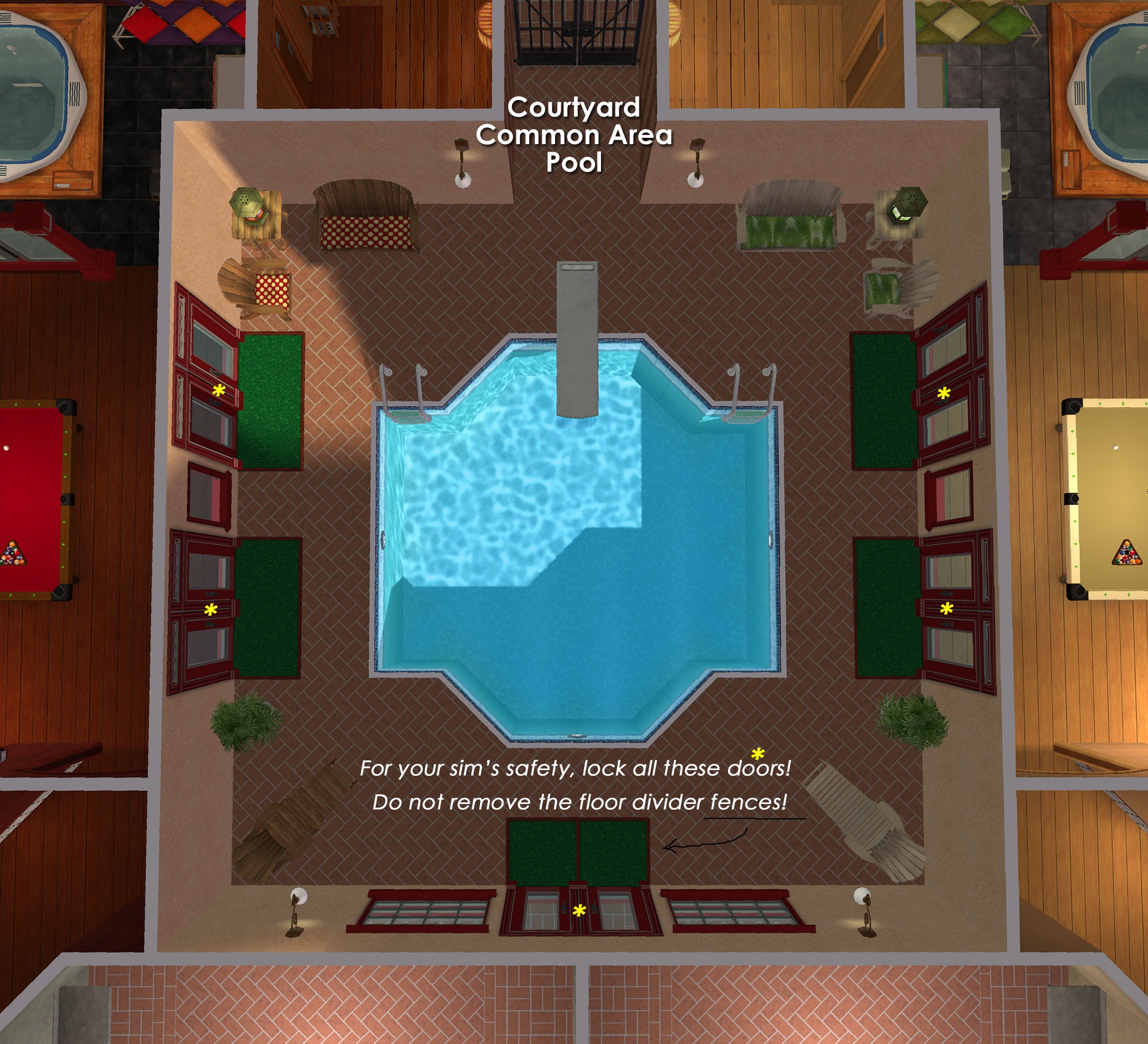 Remember to lock your courtyard access doors! Or you will have neighbors popping in at all hours to borrow a cup of sugar. :rolleyes: