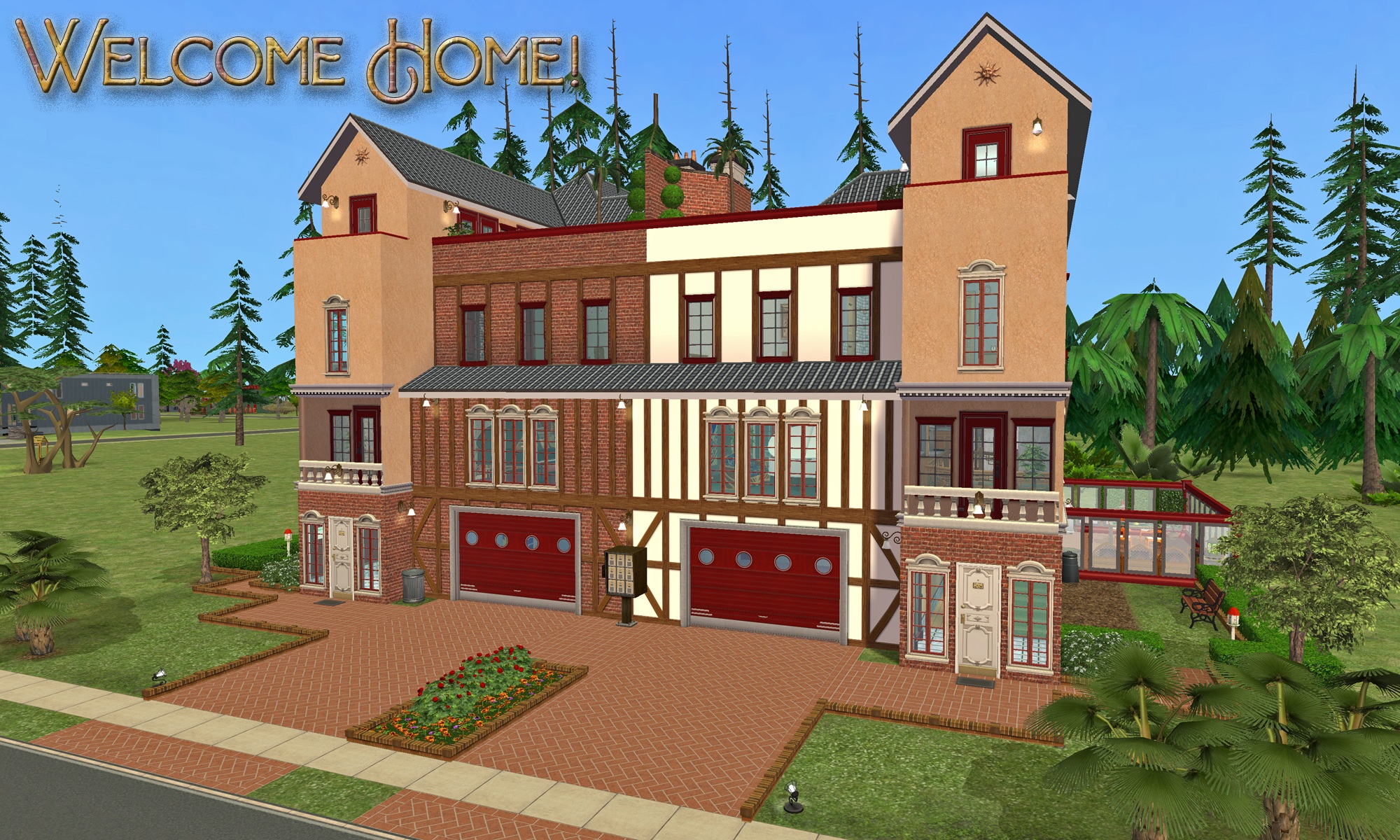 There is parking for 1 vehicle in the private garages; and "community" parking spaces on the driveway pieces. ( If you want extra cars parked on the driveway spaces, you will need to add them to the lot before moving a sim onto the property. )