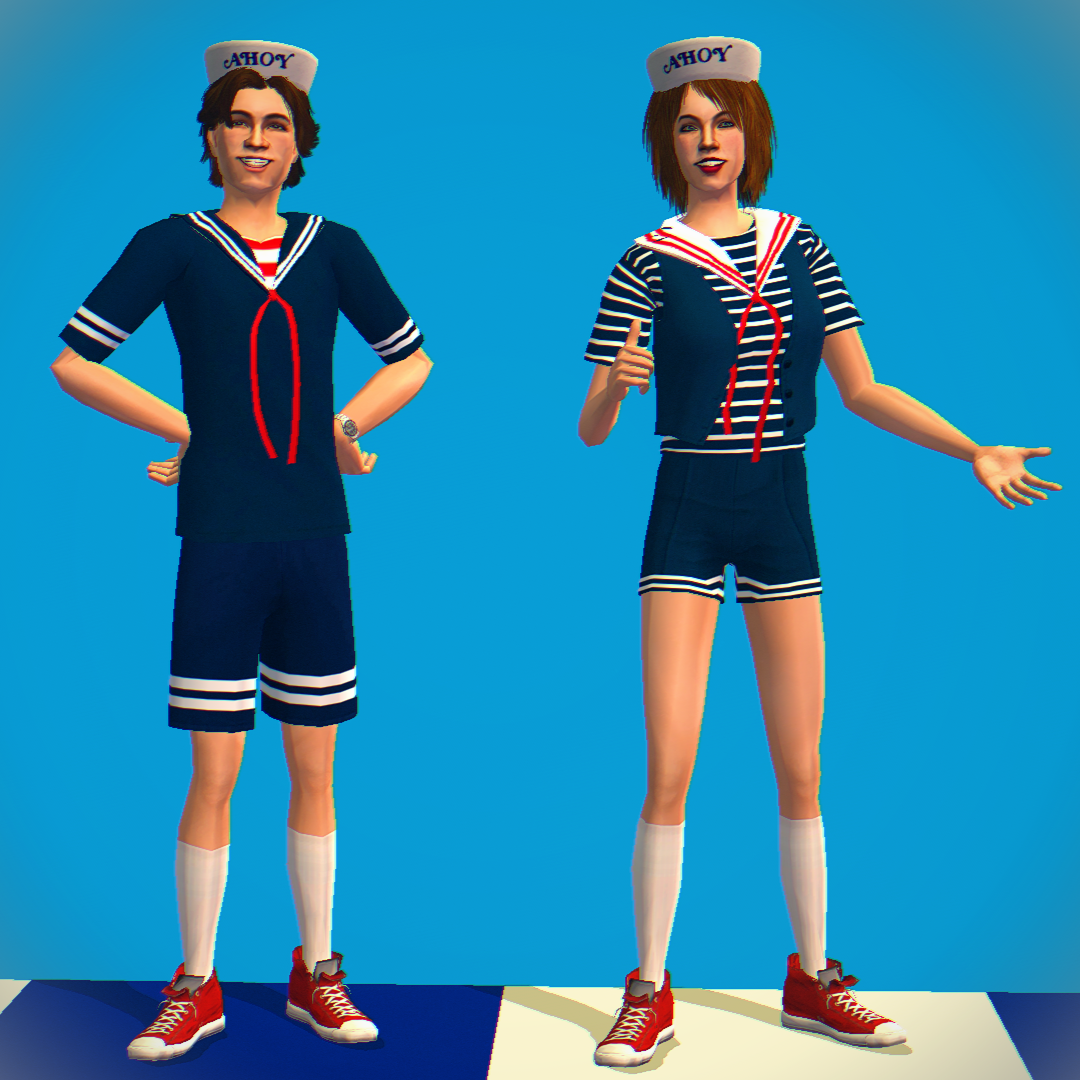 Included are adult male and adult female uniforms which also work for young adults. The hat, a 4t2 conversion originally made by Simtographies, is also included and can be found in Jewelry/Misc.