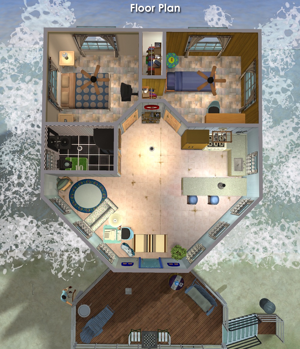 I intentionally keep my builds lightly furnished - with only EAxis stuffeths - so that you can have all the fun of decorating it! ( Please CC-it-up once you get it in your game! ) All appliances, plumbing and lighting are included; along with smoke and burglar alarms, and telephones.
