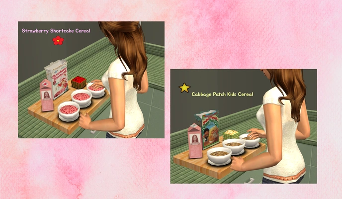 Hello o/ This is my first ever CC!! I found this post by ohmybunnny and I was inspired to make some cute cereals for The Sims 2 ^^. I hope you like them and enjoy, and since this is my first time doing this, please feel free to let me know of any problems.