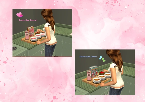 Hello everyone o/ I bring you part 2 of Cute Cereals (˶ᵔ ᵕ ᵔ˶) I hope you like them and enjoy. I've been loving the process of making them and I hope I can share with you more meals for your simmies in the future ♡ As I mentioned in the last upload, please do let me know if you encounter any problems as I am still learning.