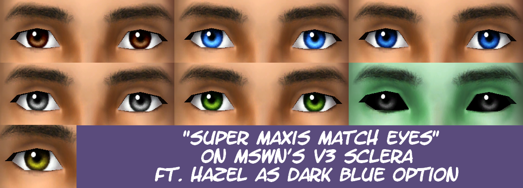 I've been doing some spring cleaning, reworking and downsizing my downloads folder significantly, and that includes my defaults. Since I'm a picky bitch I decided to make a new set of default eyes for a "hardcore Maxis Match" game. They only come in defaults because I've decided not to use custom eyes & skins anymore, there's too much hassle with custom genetics.