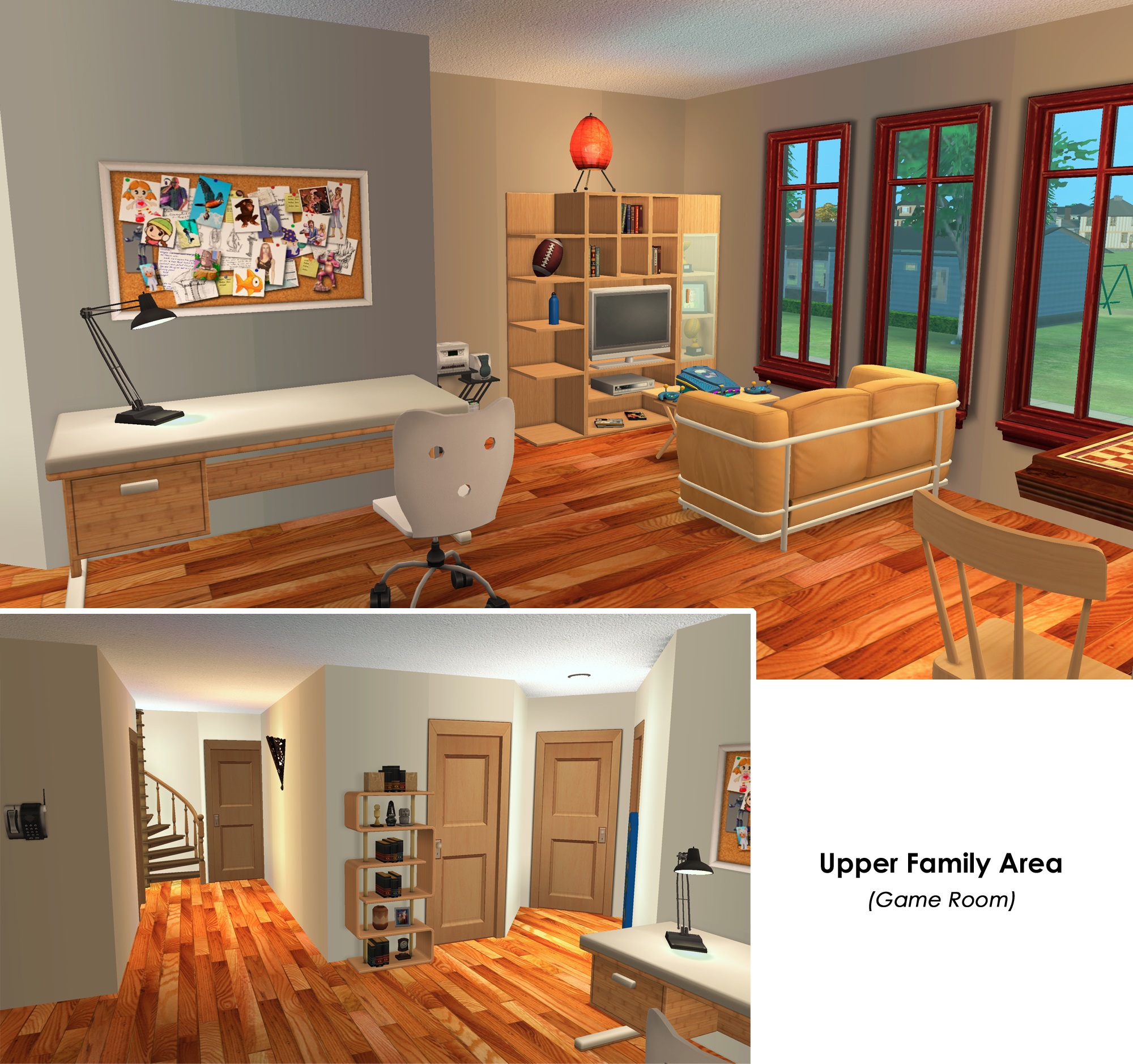 I intentionally keep my builds lightly furnished - with only EAxis stuffeths - so that you can have all the fun of decorating it! ( Please CC-it-up once you get it in your game! ) All appliances, plumbing and lighting are included; along with smoke and burglar alarms, and telephones.