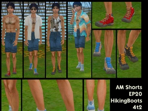 TS2: AM Shorts EP20HikingBoots 4t2 by Julie J Mesh included - has fat morph Boots from the new TS4 Adventures Pack - All 12 colours Swatch in the rar file