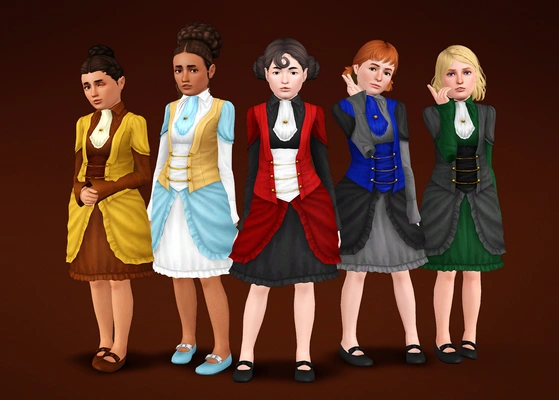 For the second gift, I have decided to convert an old Simblreen project, Conservative Couture, which was previously available for teens and elders, for children! I had to adjust the chest and neck areas quite a bit, and am pleased with the result overall. The very edges of the sleeves don't look amazing, but it's a trade-off for avoiding clipping during more exaggerated gestures.