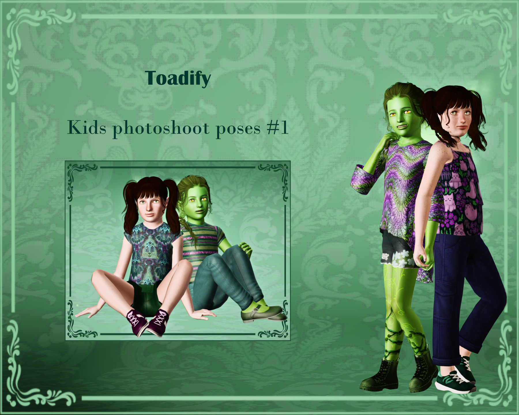 A pretty random collection of modelling/photoshoot poses for child sims. I used some of these in my own family photoshoot ;) The girls featured are my own Gabriella and Gisele