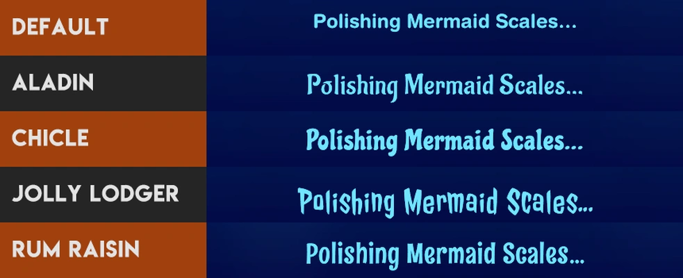 Credits: Sudtipos (Aladin, Chicle), Font Diner (Jolly Lodger), Astigmatic (Rum Raisin), OhRudi (font replacement tutorial).