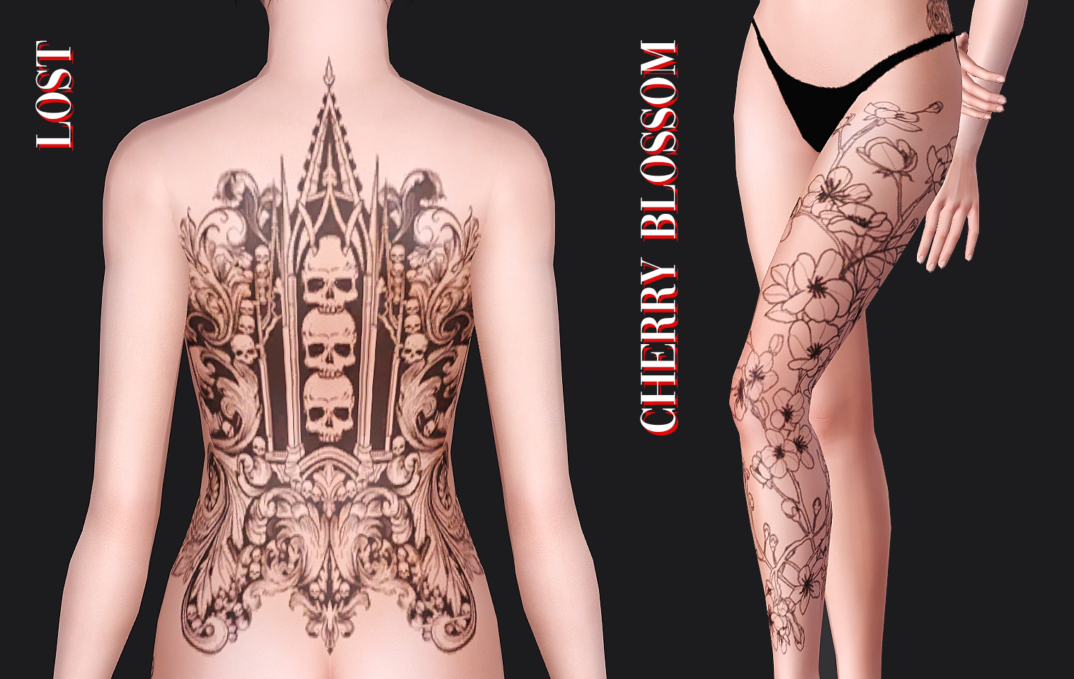Unidentifiedsims Lost and Cherry Blossom tattoos