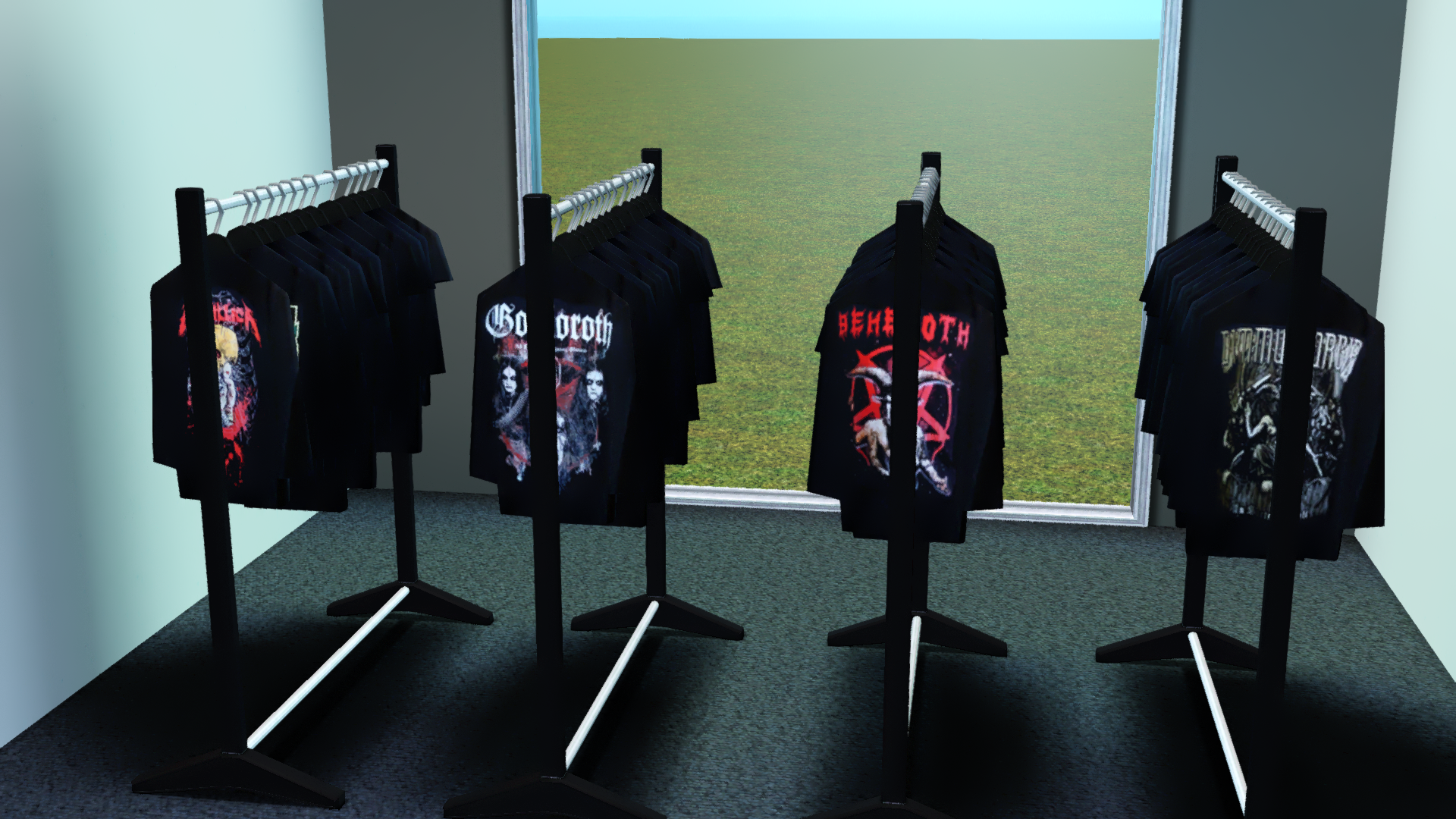 I made this thing because I want to build store like Hot Topic, or "the rock shop", how we call similar thing in my country (but they are smaller and more independent) for my sims to buy alt attire and hang out. Thanks to Phoebejay to make this possible to function like a real store 🖤 1. Original by Ziva-Sims HERE. All credits for meshes and textures goes to original creators, I just make this object functional. 2. In Misc Storages 3. Doesn't conflict with original 4. I wish to fix huge shadows that this rack cast, but idk how to do it without TSRW (it can't load it for some reason, so I cloned it with S3OC), let me know if you find a way to fix either of these.