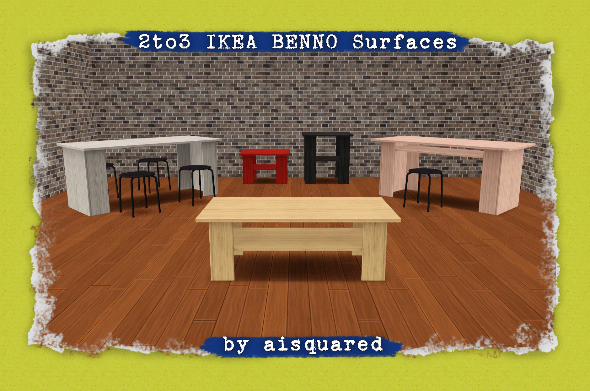 Unfinished "BENNO Coffee Table" from the TS2 IKEA SP converted to TS3. Plus surface variants.