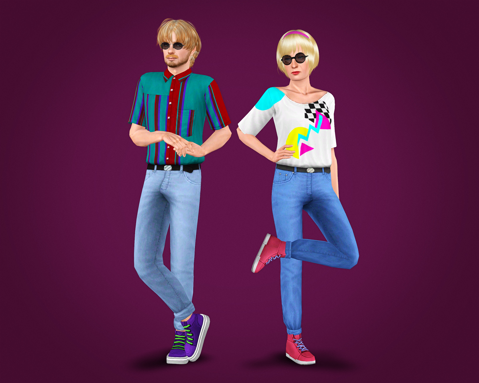 Two similar outfits that I came across after finishing the previous batch, so they get their own post. Using so many saturated colors for previews was fun!