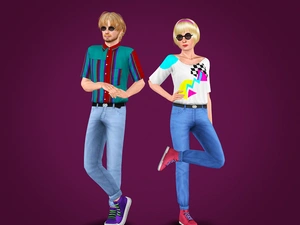 Two outfits from the 70s, 80s and 80s pack, converted for elders.