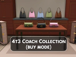 The two handbags and one trunk (dresser) from The Sims 4 Coach Collection