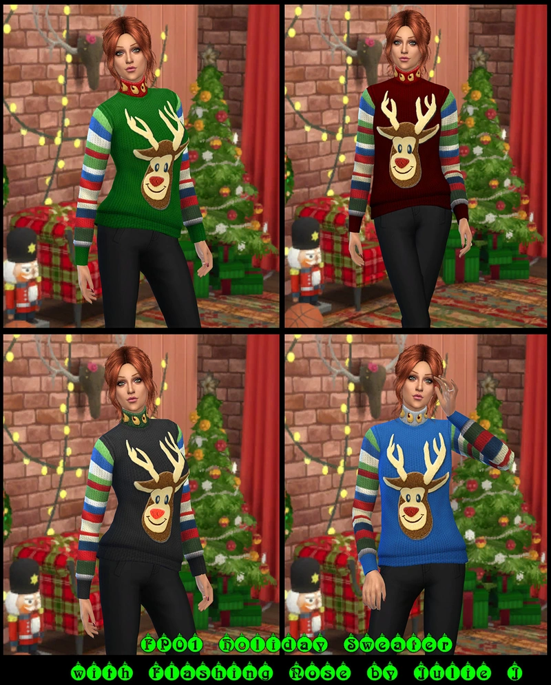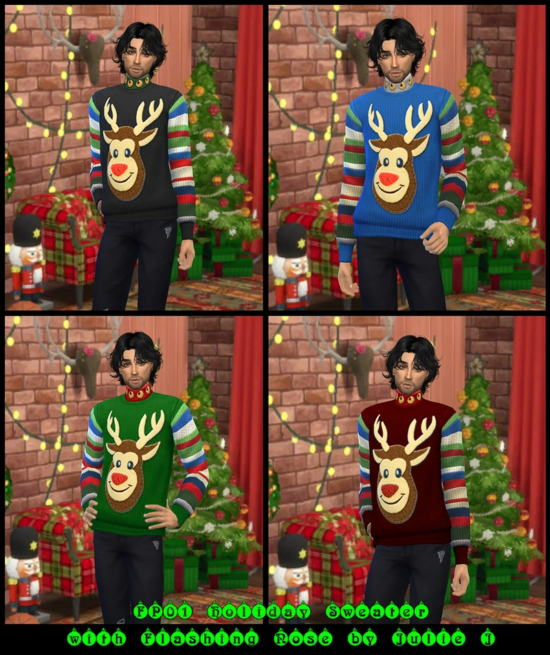TS4: FP01 Holiday Sweater with Flashing Reindeer Nose by Julie J Male and Female - Teen to Elder Everyday/Cold Weather Has own thumbnail DOWNLOAD